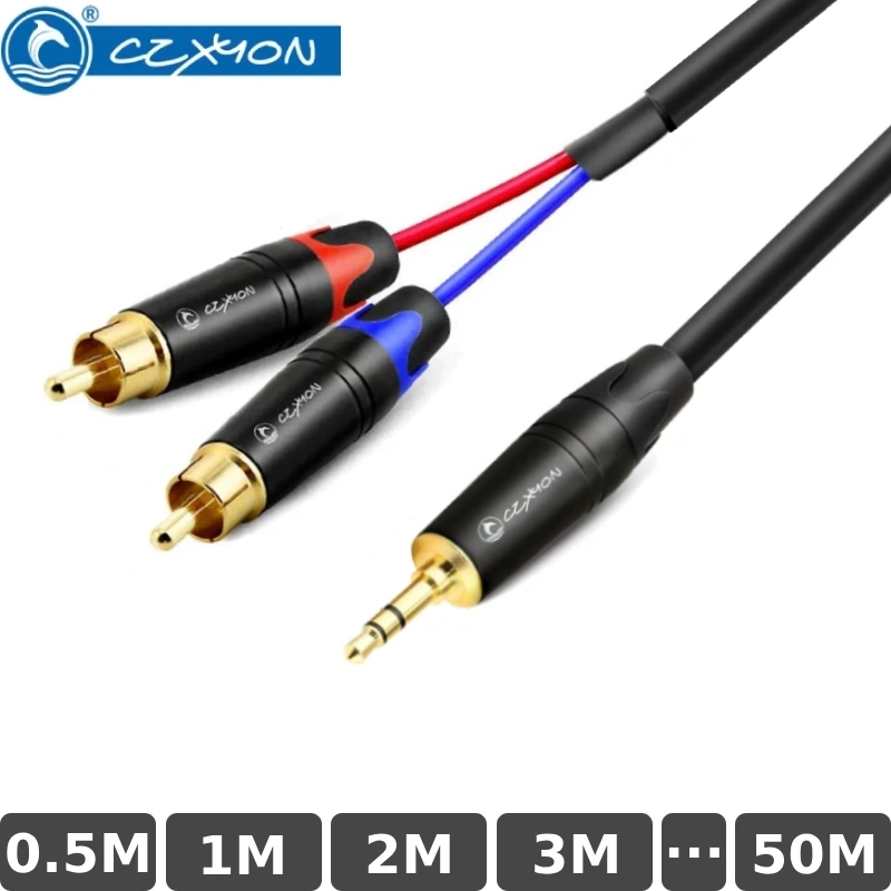 Cáp âm thanh DIY 3.5mm đực ra 2 RCA CZXYON cho máy tính, điện thoại, loa, ampli từ 1m đến 50m